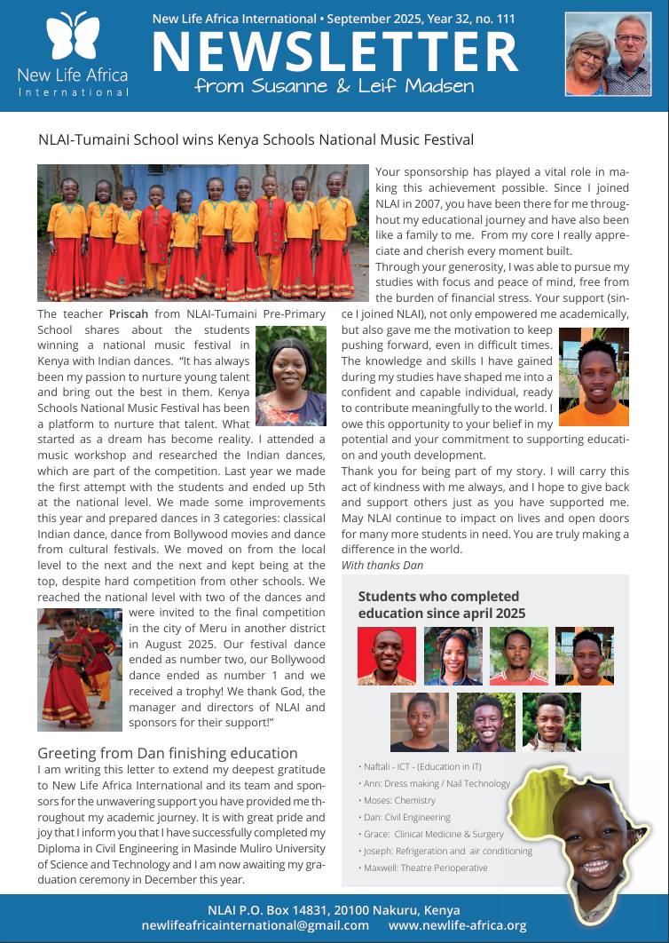 You can also receive the newsletter in the post. Let us know any changes to your address or preferences regarding the newsletter at nlai.nakuru.kenya@gmail.com.